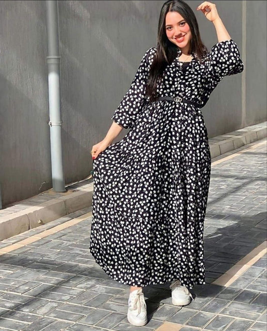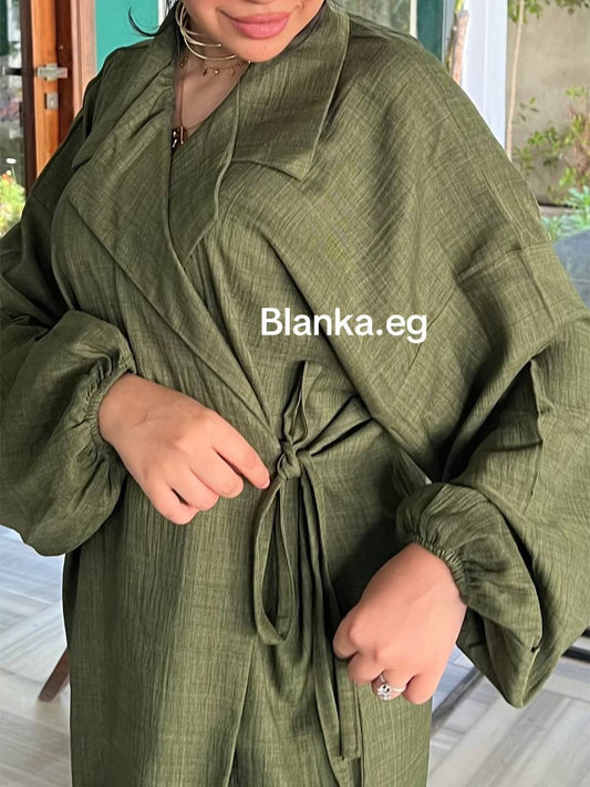 فستان فريسكا كتان ميدي فرنسي -مطرز ايتامين
