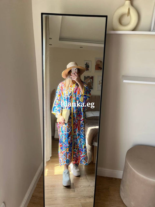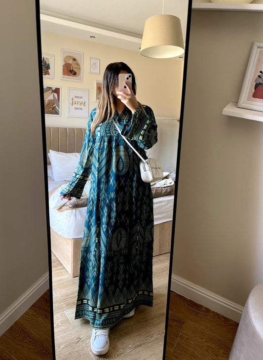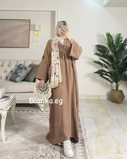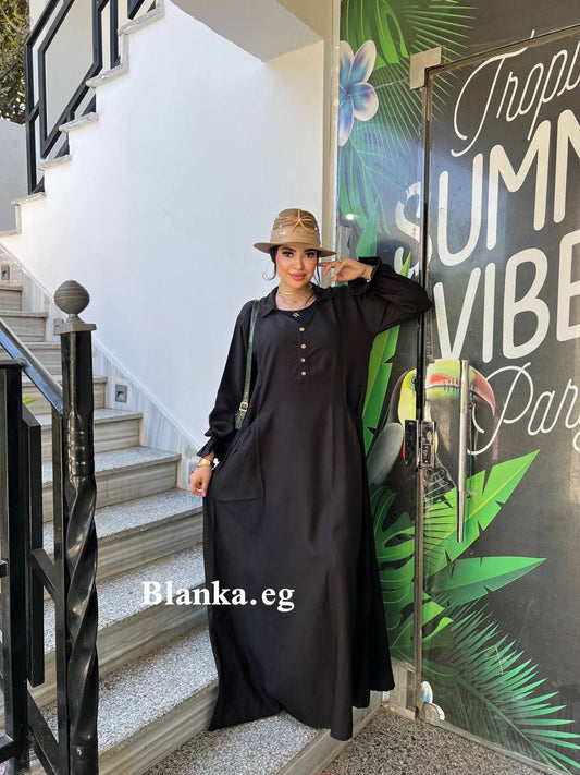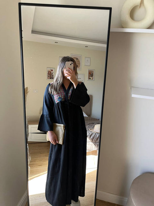فستان فريسكا كتان ميدي فرنسي -مطرز ايتامين