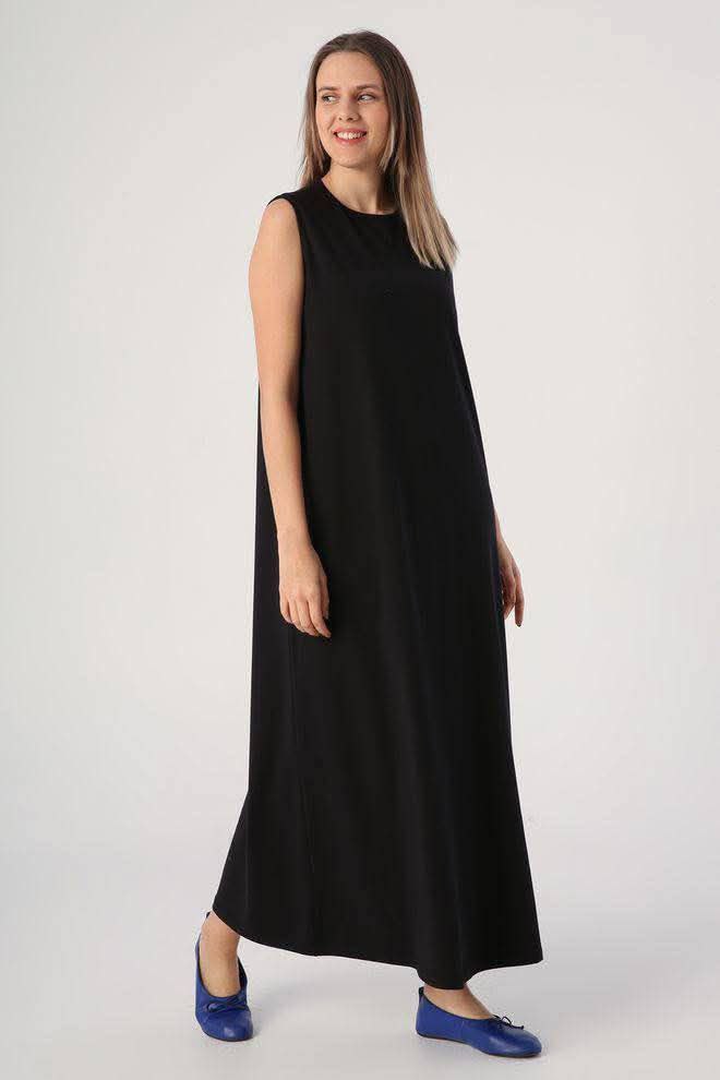 دريس بيزك بدون اكمام برقبه دائريه
