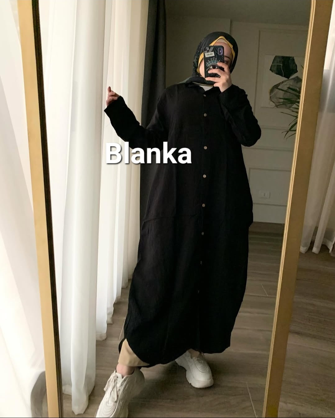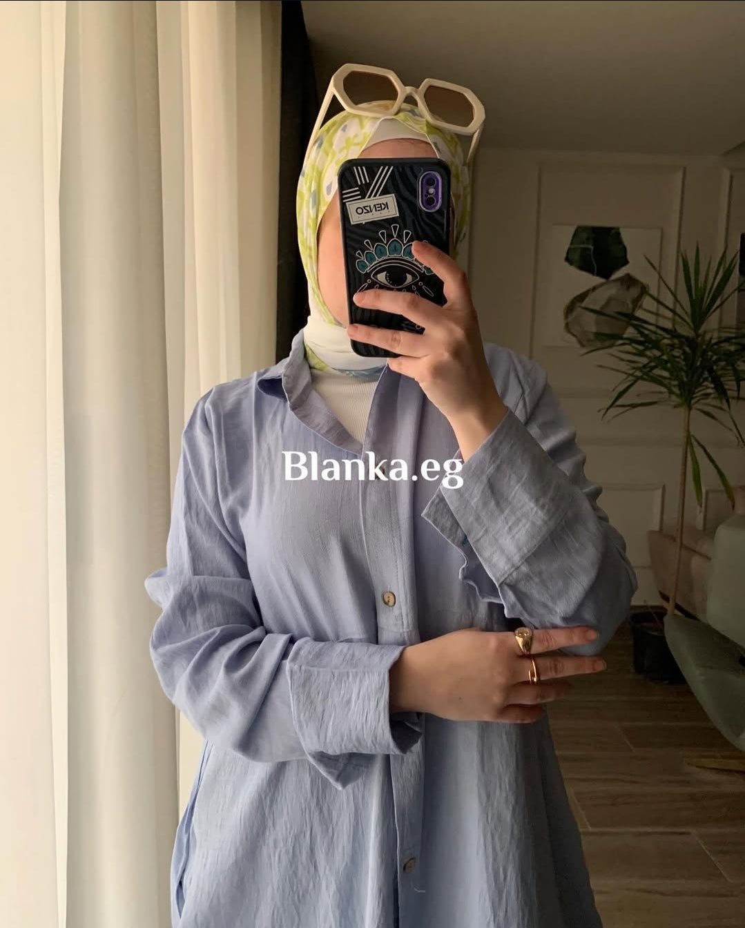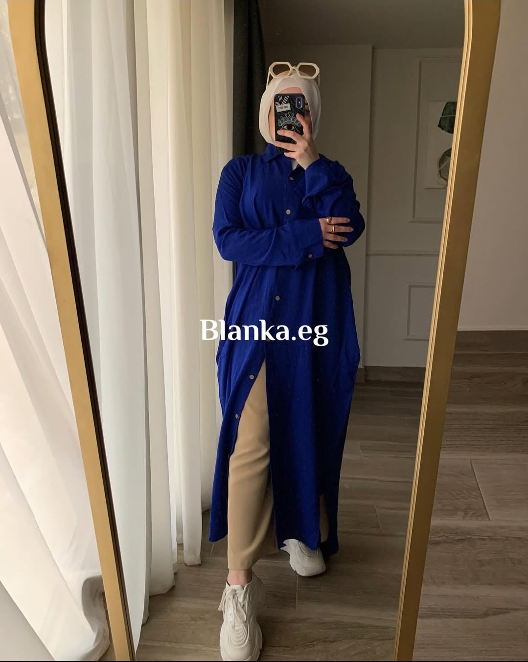 شميز طويل كتان تركى -بزرايز- مزود بجيوب