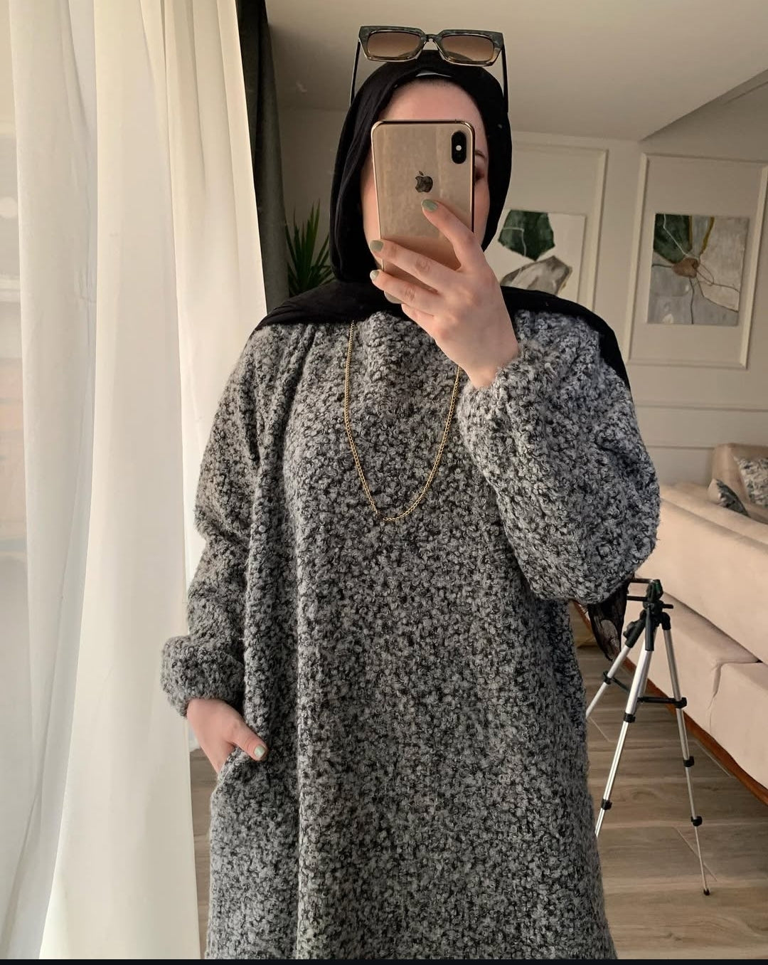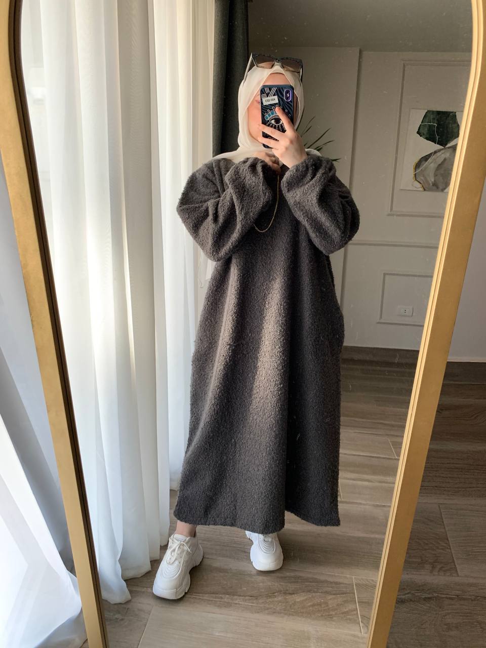خامة الصوف الفرو التركي تمتاز بنعومتها الفائقة ودفئها المثالي لأيام البرد، مع تصميم واسع يناسب المحجبات ويمنح حرية حركة طوال اليوم