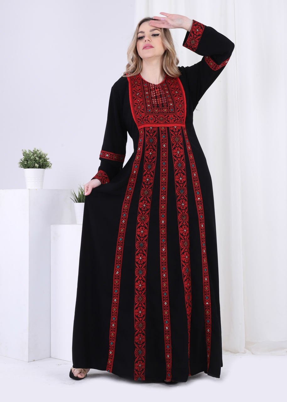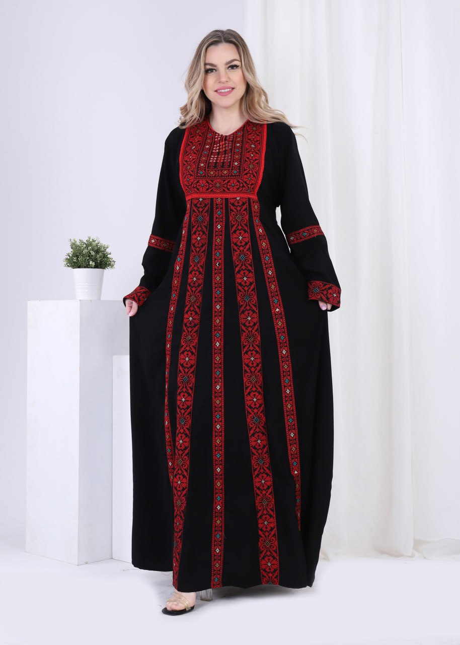 متزينة بتطريز ايتامين يدوي لإطلالة تراثية راقية تجمع بين الشياكة والأصالة.