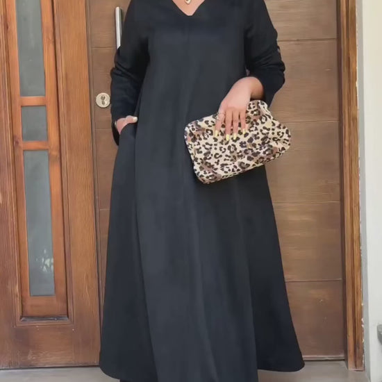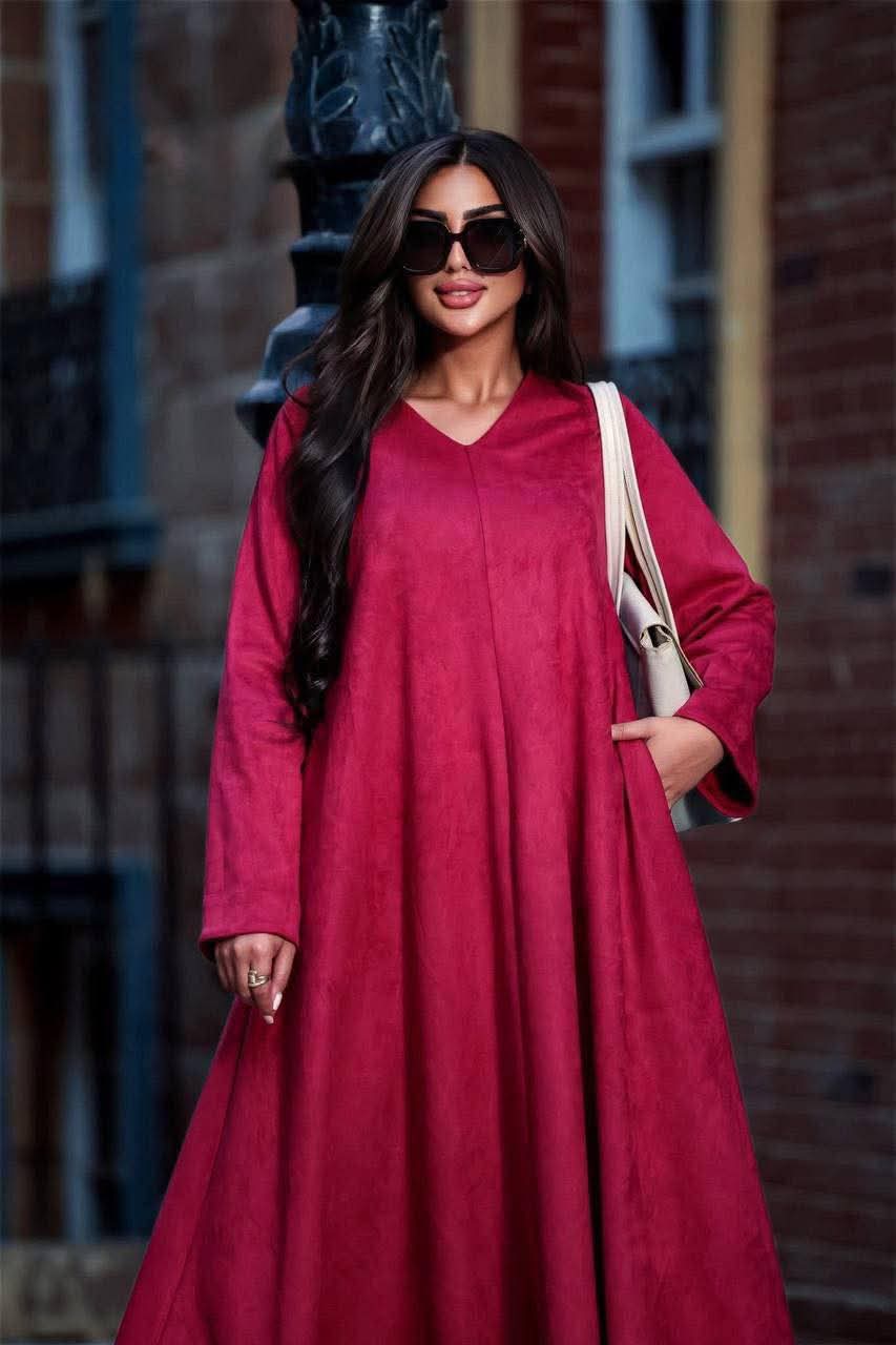 فستان واسع بخامة شمواه سويدي ناعمة بملمس فخم.