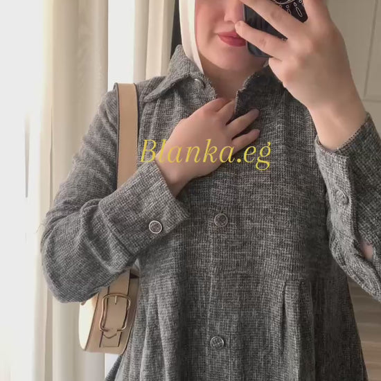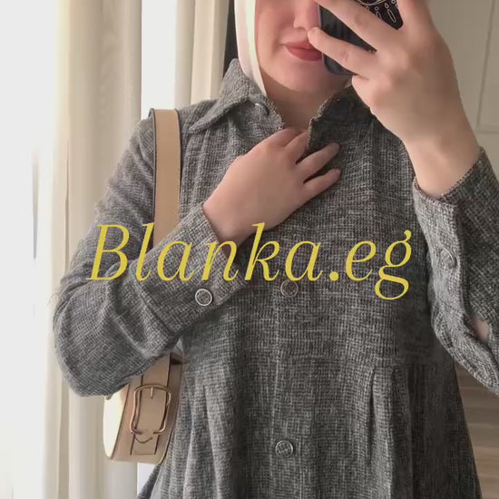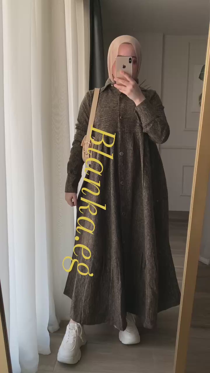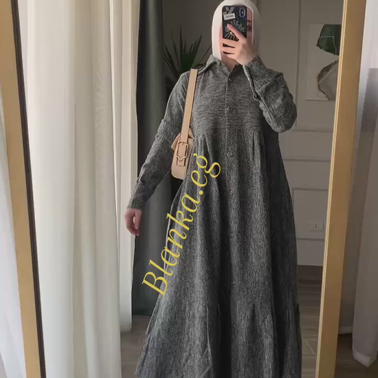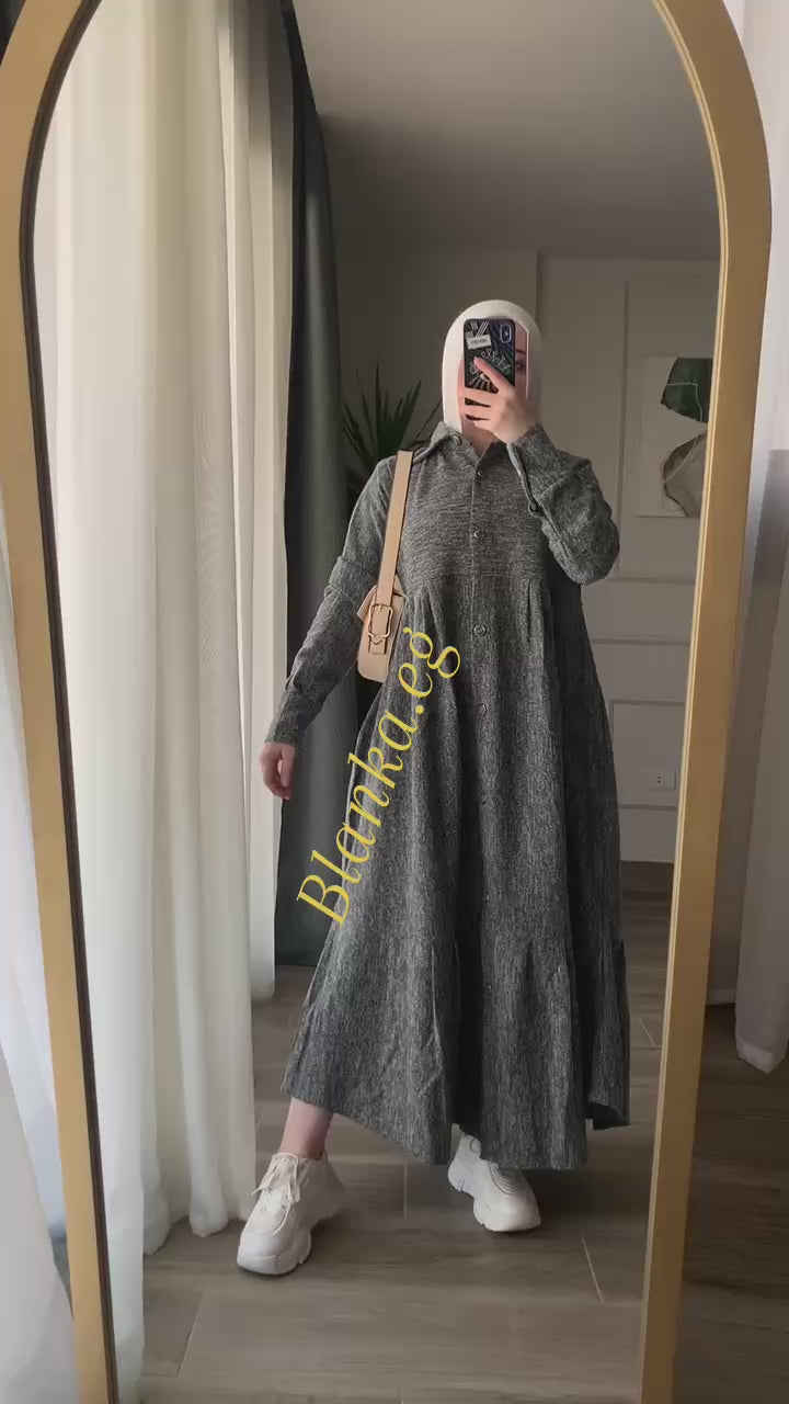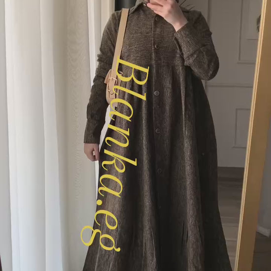 فستان صوف اسباني طويل بتصميم محتشم وكلاسيكي، مصنوع من قماش صوف مُريح ودافئ. يتميز ياقة قميصية وأكمام طويلة مع زراير كبس بطول الفستان بالكامل لتفصيل أنيق ومرونة في الإطلالة. مناسب للخروج اليومي والكاجوال ستايل، مناسب بشكل مريح ويمنحك دفء بدون ثقل.