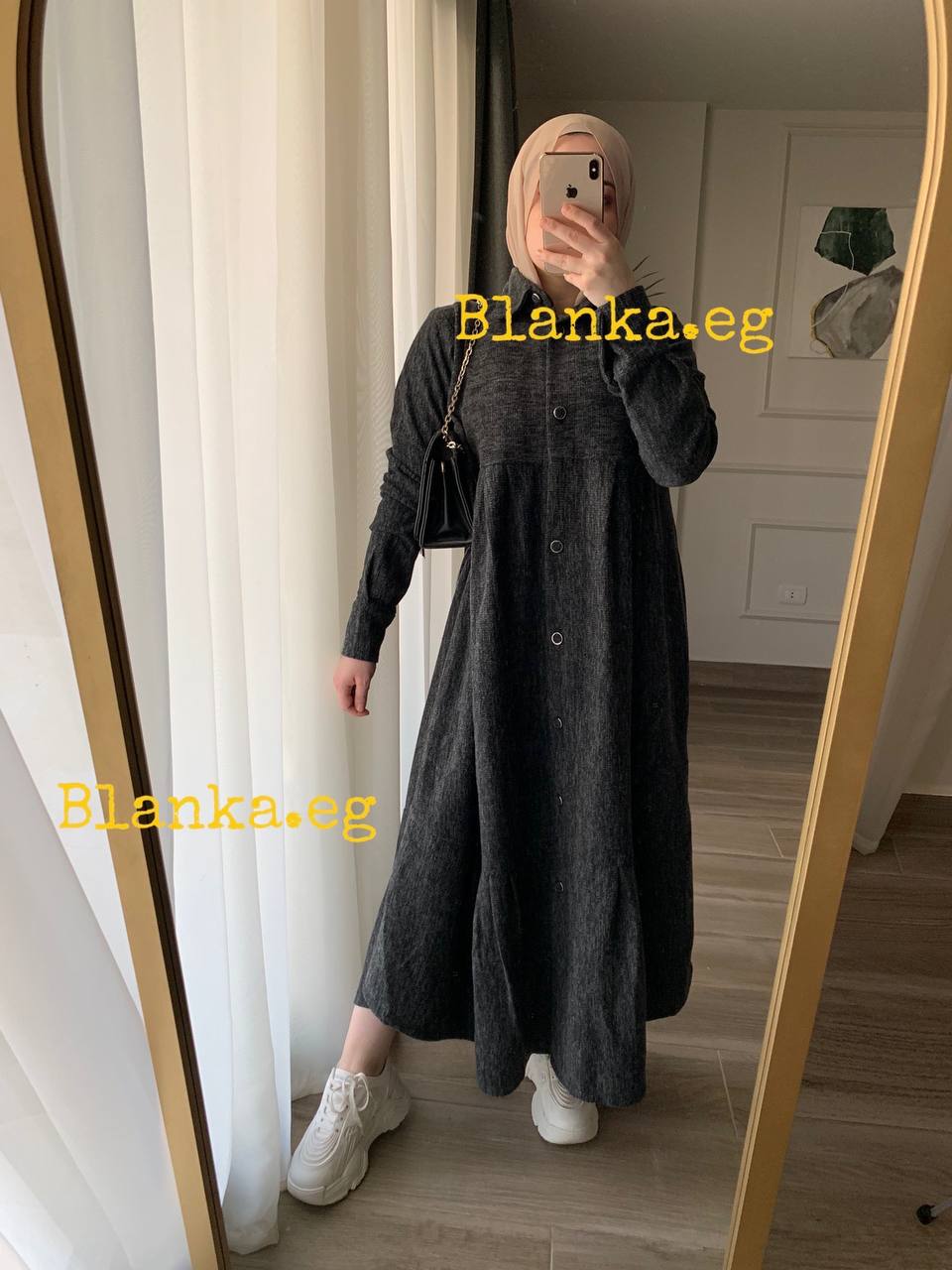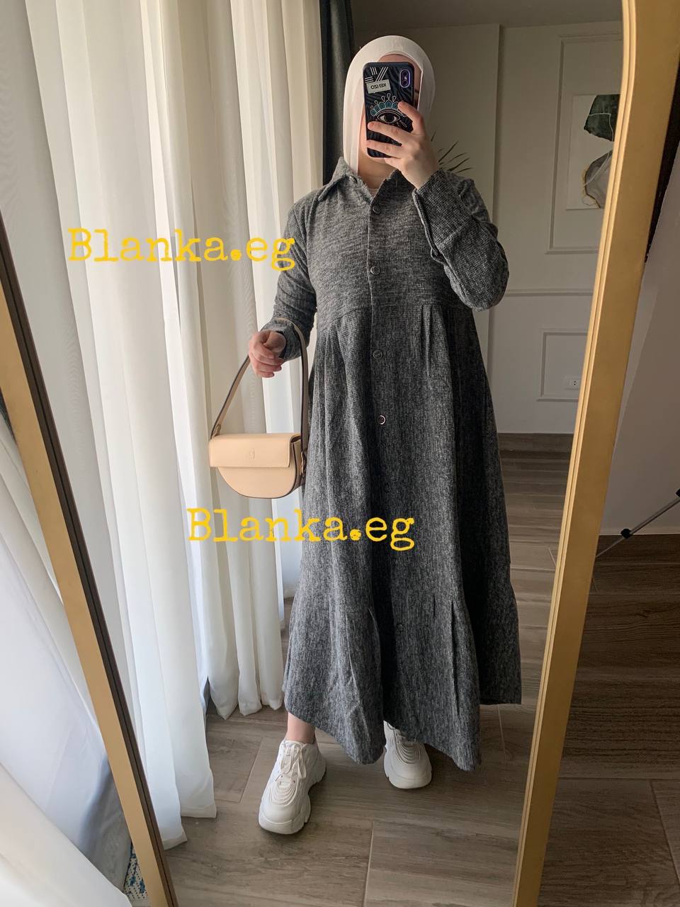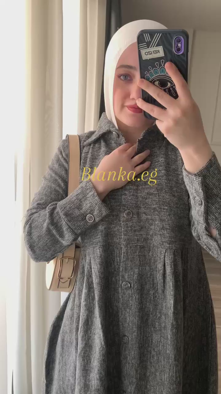 فستان صوف اسباني طويل بتصميم محتشم وكلاسيكي، مصنوع من قماش صوف مُريح ودافئ. يتميز ياقة قميصية وأكمام طويلة مع زراير كبس بطول الفستان بالكامل لتفصيل أنيق ومرونة في الإطلالة. مناسب للخروج اليومي والكاجوال ستايل، مناسب بشكل مريح ويمنحك دفء بدون ثقل.