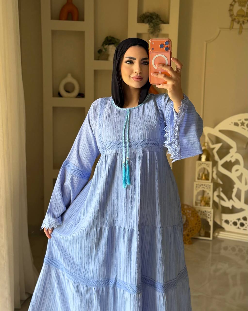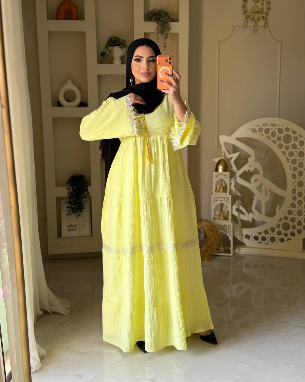 خامة فرسكا كتان خفيفة ومريحة، مناسبة للّبس اليومي والمشاوير وكمان للسهرات البسيطة.