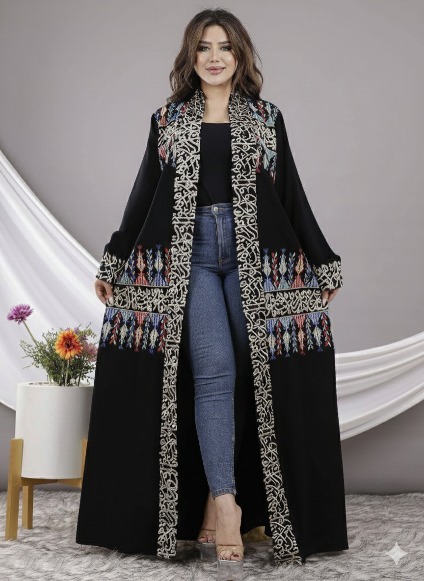 كيمونو / عباية عصرية بتطريز تراثي فاخر