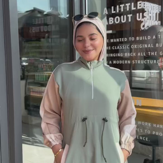 موديل عصري ومحتشم بخامة ووتر برو أورزلين المقاومة للماء والخفيفة. تصميم عملي مع جيوب وسحّاب وجانب بلون متباين — مثالي للخروجات اليومية والمشاوير تحت أي طقس.
