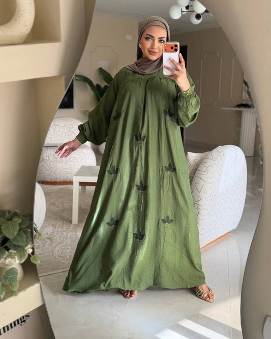 On saleموديل كتان مطرز بنقشة النخيل 🌴